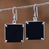 Square Cut Black Jade and Silver Earrings from Guatemala 'Black Abstractions' Item ID: 2671777214