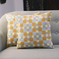 Square Embroidered Cotton Cushion Covers from India Pair 'Square Illusion' Item ID: 2671789496