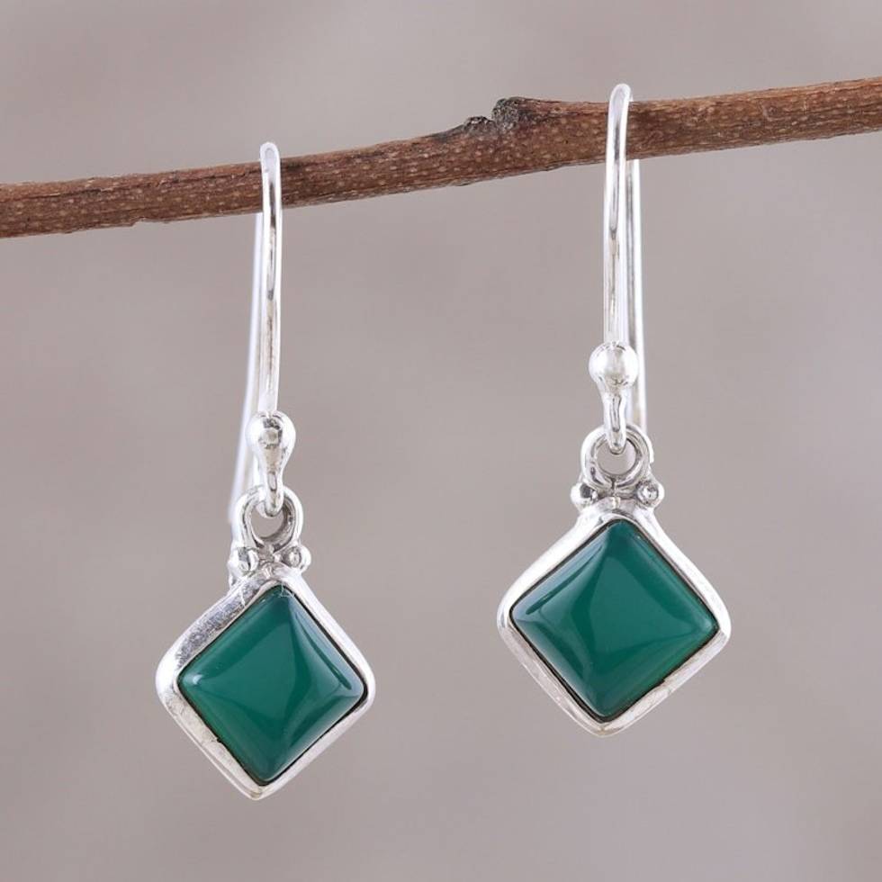 Square Green Onyx Dangle Earrings from India 'Happy Kites in Green' Item ID: 2669955532