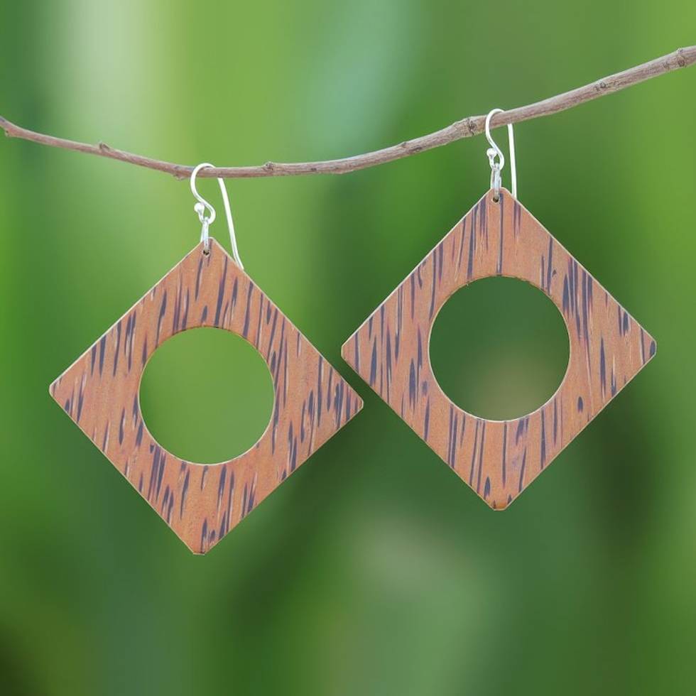 Square Lontar Wood Dangle Earrings from Thailand 'Natural Creativity' Item ID: 2671799099