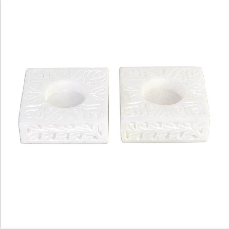 Square Marble Tealight Holder with Engraved Vines Pair 'White Garden' Item ID: 2671793016