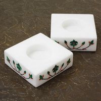 Square Marble Tealight Holders with Green Blooms Pair 'Blooming Buds in Green' Item ID: 2671793081