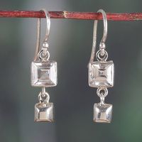 Square Modern White Topaz Sterling Silver Dangle Earrings 'White Shimmer' Item ID: 2676664423