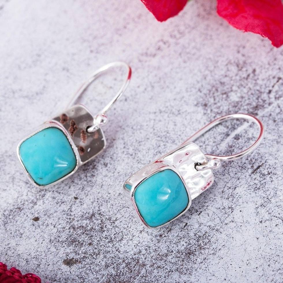 Square Natural Turquoise Dangle Earrings from Mexico 'Watery Gleam' Item ID: 2671807983