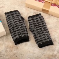 Square-Pattern Black and Grey Alpaca Blend Fingerless Mitts 'Night Squares' Item ID: 2671401774