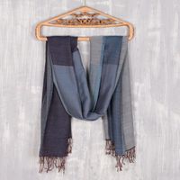 Square Pattern Fringed Wool Shawl Woven in India 'Abstract Beauty' Item ID: 2669924092
