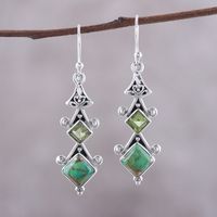 Square Peridot and Composite Turquoise Dangle Earrings 'Tower Charm' Item ID: 2671792751
