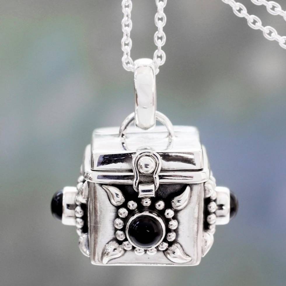 Square Prayer Box Pendant Necklace with Onyx 'Royal Prayer' Item ID: 2671793017