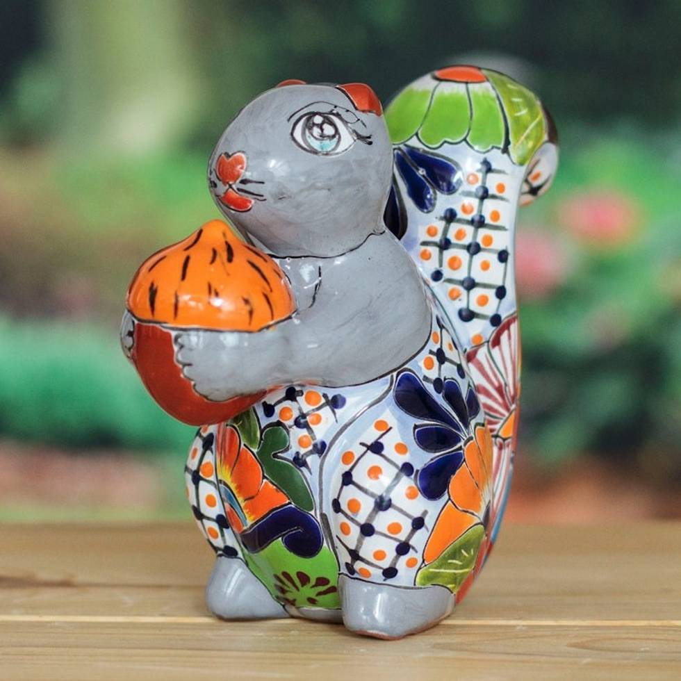 Squirrel-Themed Hacienda Painted Ceramic Sculpture in Grey 'Sylvan Tradition' Item ID: 2669897634
