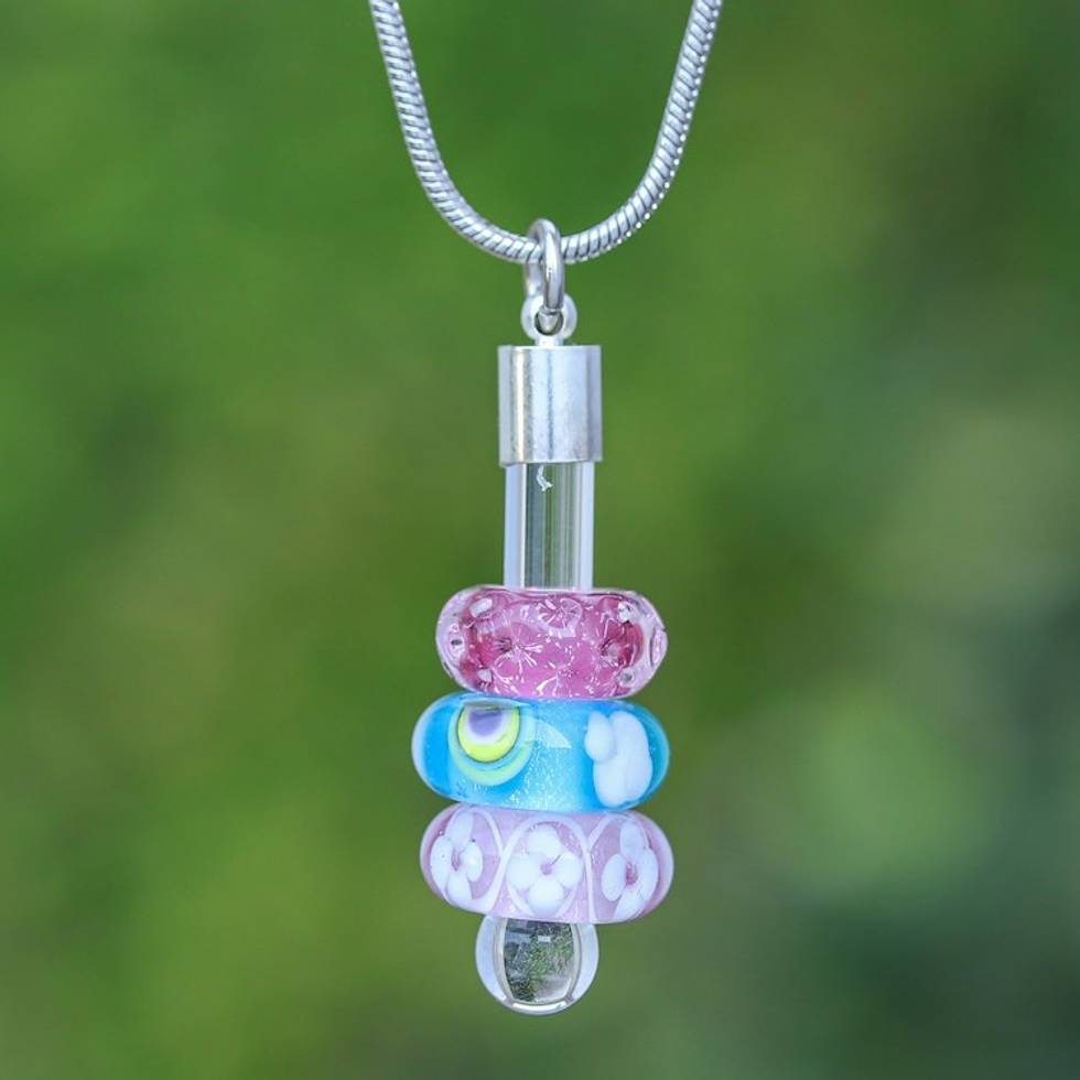 Stainless Steel Necklace with Colorful Blown Glass Pendants 'Candy Amulets' Item ID: 2671796834