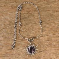 Stainless Steel Sun Pendant Necklace with Amethyst Gemstone 'Purple Rays' Item ID: 2669935065