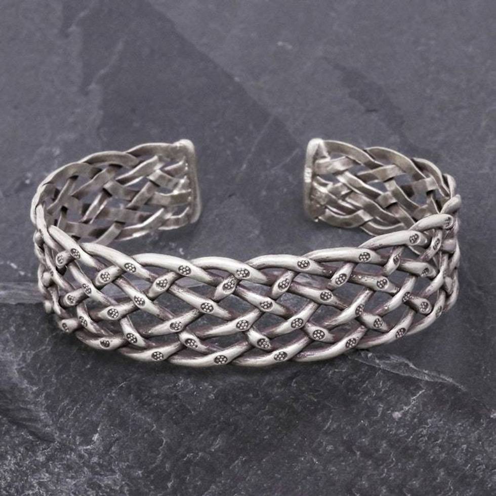 Stamped Sterling Silver Cuff Bracelet 'Hill Tribe Trellis' Item ID: 2676647379