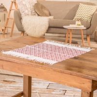 Star and Geometric-Themed Red Cotton Placemat with Fringes 'Stars in the Sky' Item ID: 2671770738