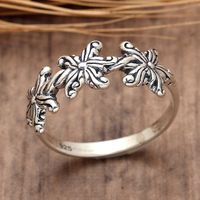 Star-Inspired Floral Sterling Silver Band Ring from Bali 'Starry Blooms' Item ID: 2671765110