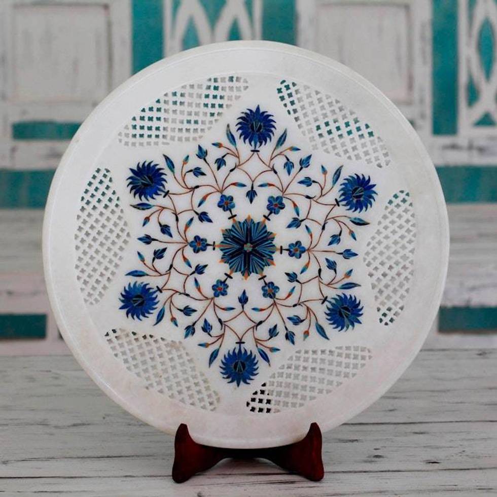 Star Motif Marble Inlay Decorative Plate from India 'Star Burst' Item ID: 2676663763