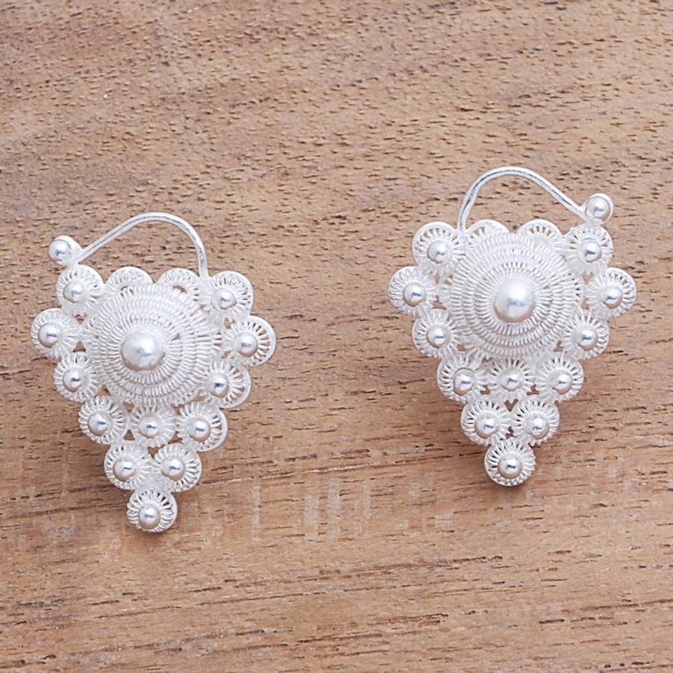 Star Pattern Sterling Silver Button Earrings from Java 'Starry Fruit' Item ID: 2671735449