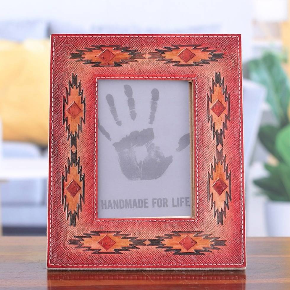 Star-Patterned Red and Flamingo Leather Photo Frame 4x6 'Starry Instant' Item ID: 2671781207