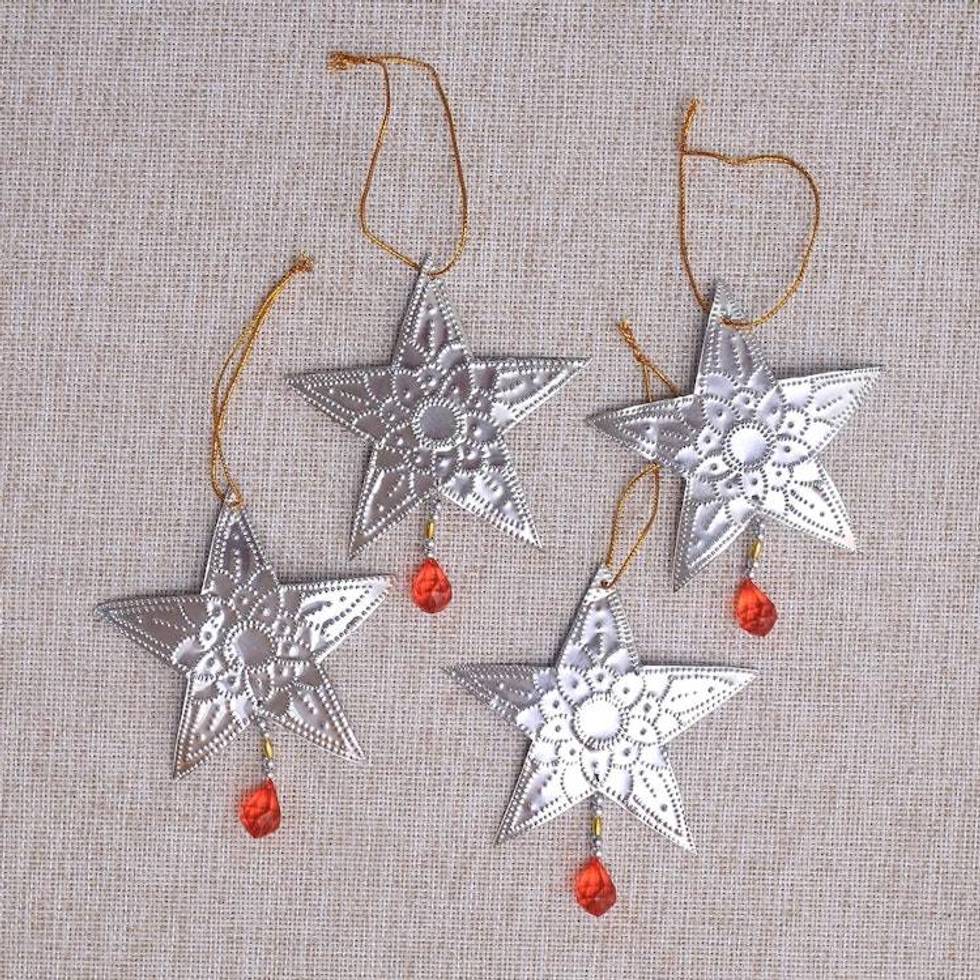 Star-Shaped Aluminum Ornaments from Bali Set of 4 'Glimmering Stars' Item ID: 2676663266