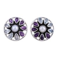 Star-Shaped Multi-Gemstone Button Earrings from India 'Glittering Stars' Item ID: 2671796388