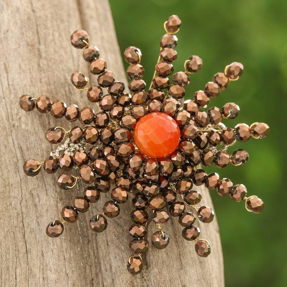 Star-Shaped Orange Chalcedony and Glass Beaded Brooch 'The Evening Starlight' Item ID: 2671797821