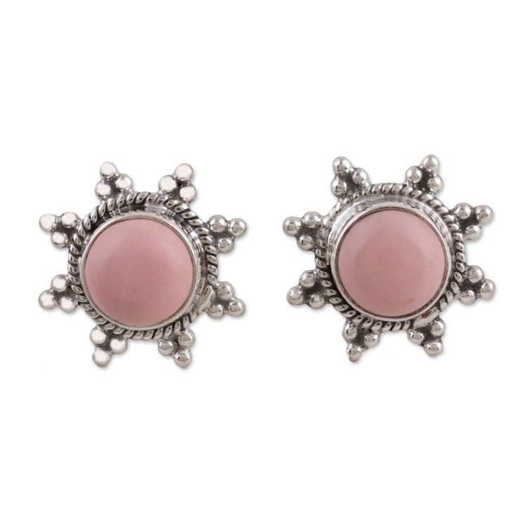 Star Shaped Pink Opal and Sterling Silver Button Earrings 'Starry-Eyed' Item ID: 2671791511