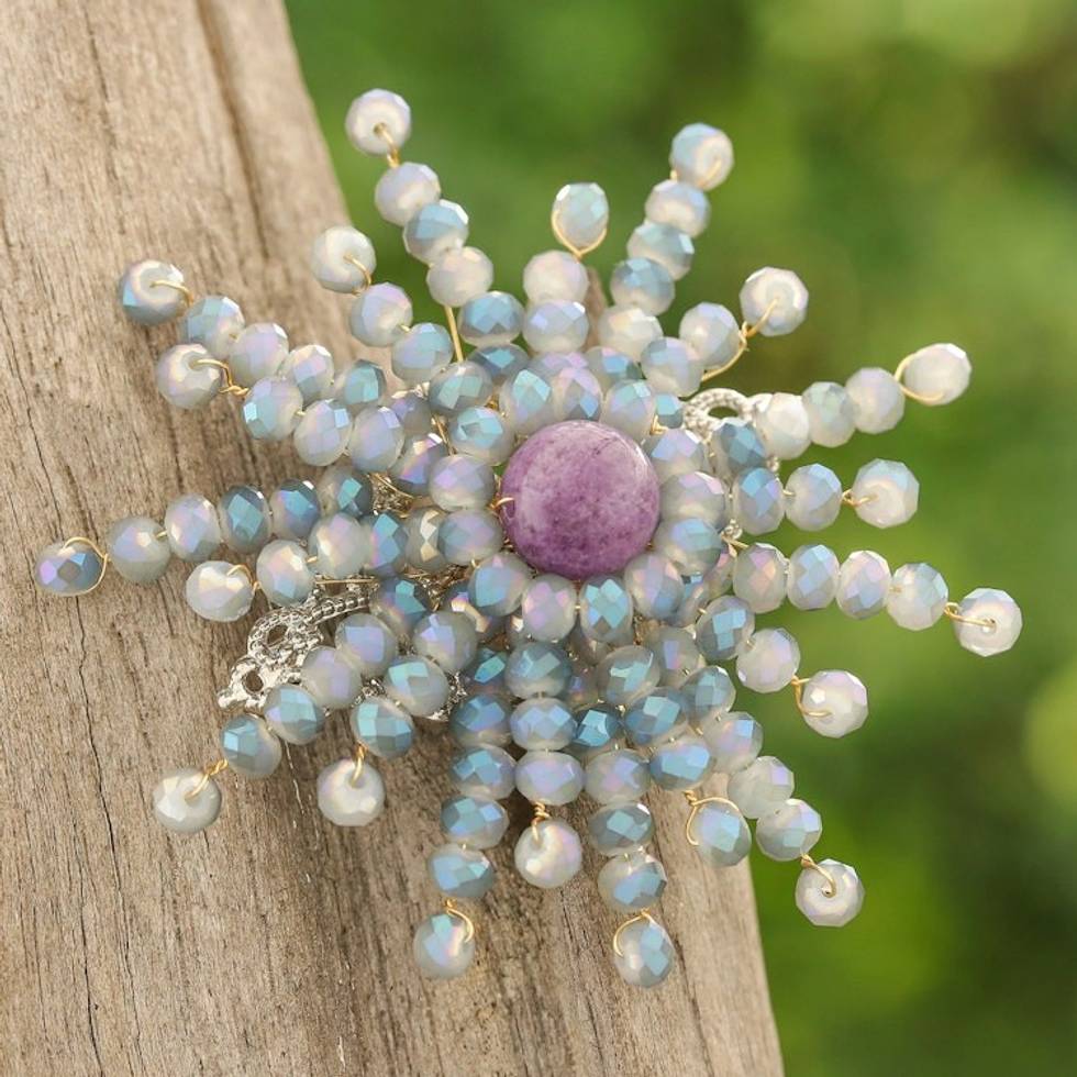 Star-Shaped Purple Quartz and Glass Beaded Brooch 'The Ethereal Starlight' Item ID: 2671798232
