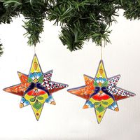 Star-Shaped Talavera Ceramic Ornaments from Mexico Pair 'North Star' Item ID: 2669897688