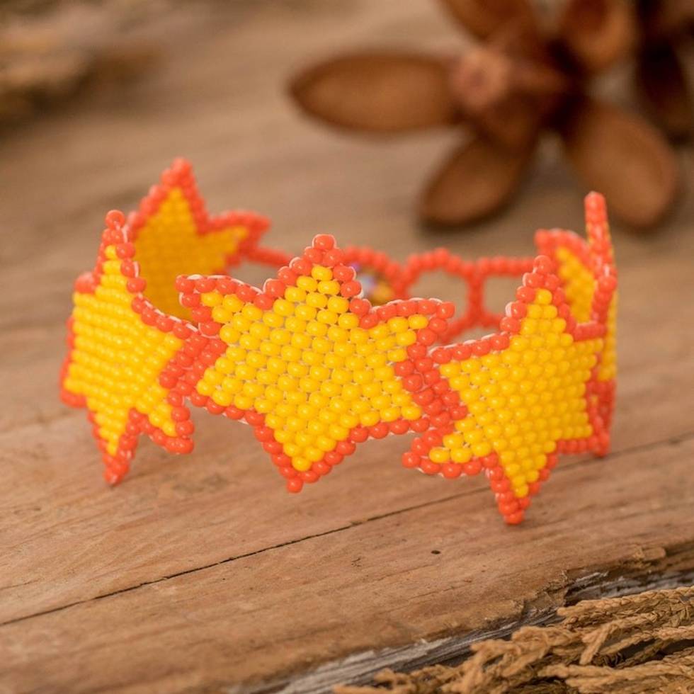 Star-Themed Beaded Wristband Bracelet in Yellow and Orange 'Yellow Starlight' Item ID: 2671769174