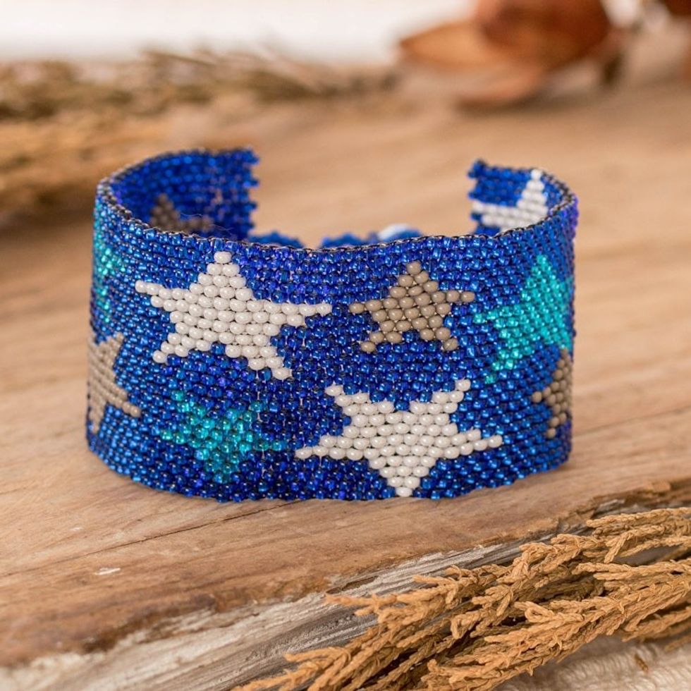 Star-Themed Handmade Beaded Bracelet in Blue White and Grey 'Constellation in Blue' Item ID: 2671768842