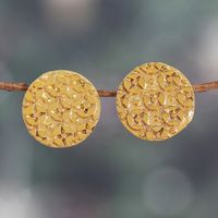 Star-Themed High-Polished Round Brass Button Earrings 'Symphony of Stars' Item ID: 2671782701