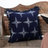 Star-Themed Midnight Cotton Batik Cushion Cover with Fringes 'Brightest Midnight Star' Item ID: 2669891552
