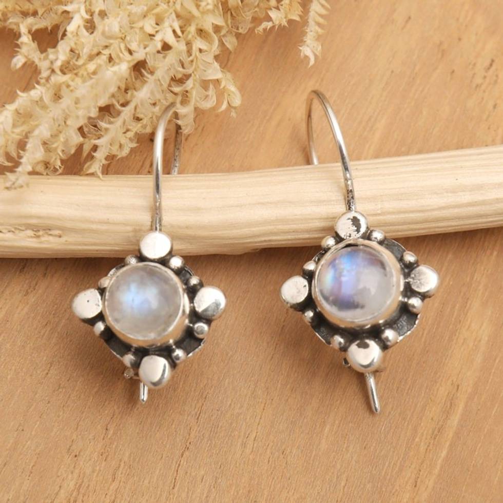 Star-Themed Rainbow Moonstone Drop Earrings from Bali 'Harmony Star' Item ID: 2671667726