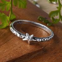 Starfish-Themed Textured Sterling Silver Band Ring from Bali 'Little Starfish' Item ID: 2676667312