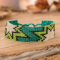 Starry Turquoise and Green Glass Beaded Wristband Bracelet 'Island Blast' Item ID: 2671769044