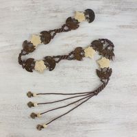 Stars and Half Moons Coconut Shell and Nylon Cord Tie Belt 'Moonlit Stars' Item ID: 2671801174