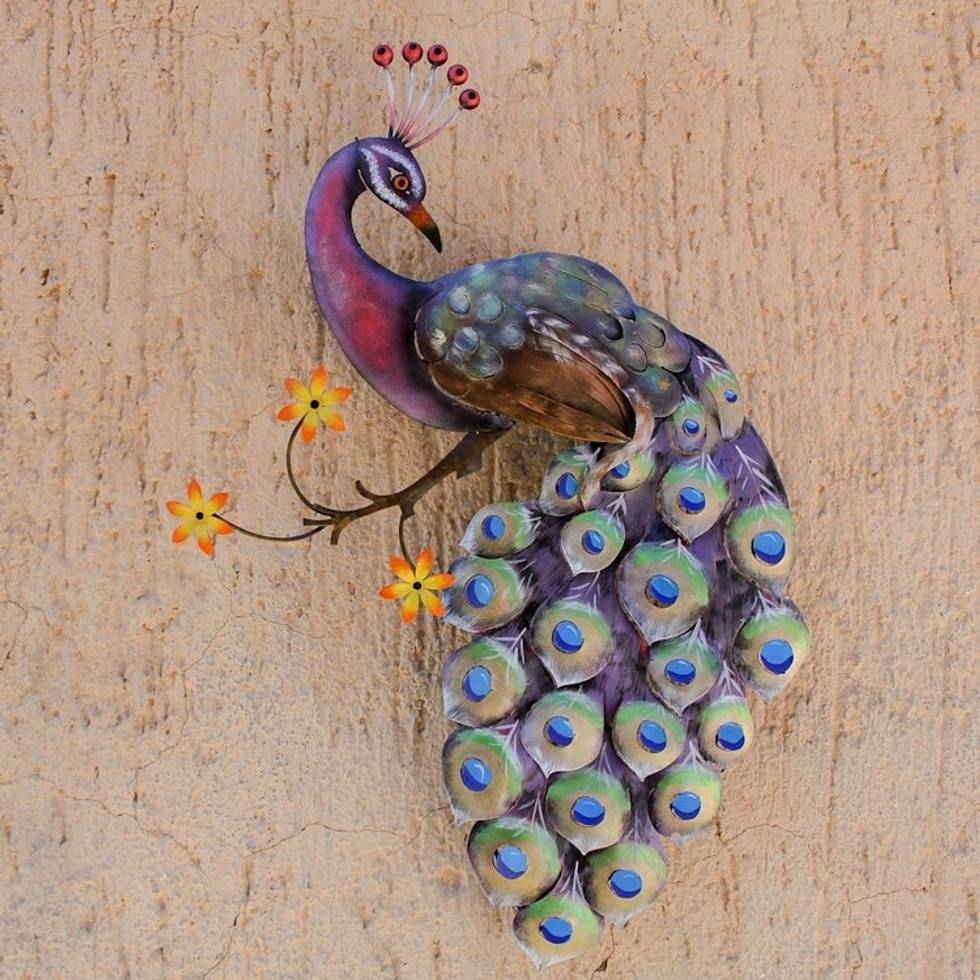 Steel Wall Sculpture of a Peacock from Mexico 'Sunset Peacock' Item ID: 2671639075