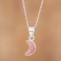 Sterling and Rhodonite Necklace 'Moon Crescent in Pink' Item ID: 2671771818