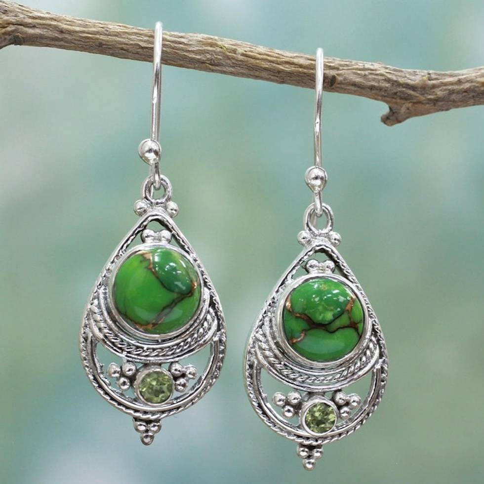 Sterling Silver, Peridot, and Composite Turquoise Earrings 'Green Elegance' Item ID: 2669923959
