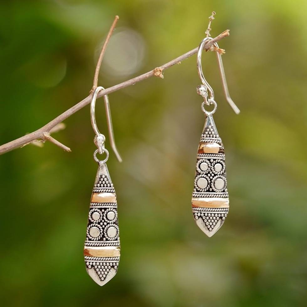 Sterling Silver 18k Gold Accent Dangle Earrings 'Fireflies' Item ID: 2671700982