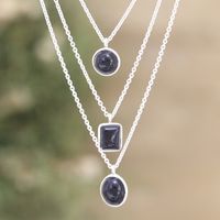 Sterling Silver 3-Strand Black Onyx Pendant Necklace 'Protection Shapes' Item ID: 2671786899