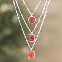 Sterling Silver 3-Strand Carnelian Pendant Necklace 'Lucky Shapes' Item ID: 2671786888