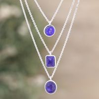 Sterling Silver 3-Strand Lapis Lazuli Pendant Necklace 'Truth Shapes' Item ID: 2671786511