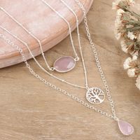 Sterling Silver 3-Strand Pendant Necklace with Rose Quartz 'Unconditional Nature' Item ID: 2671786783