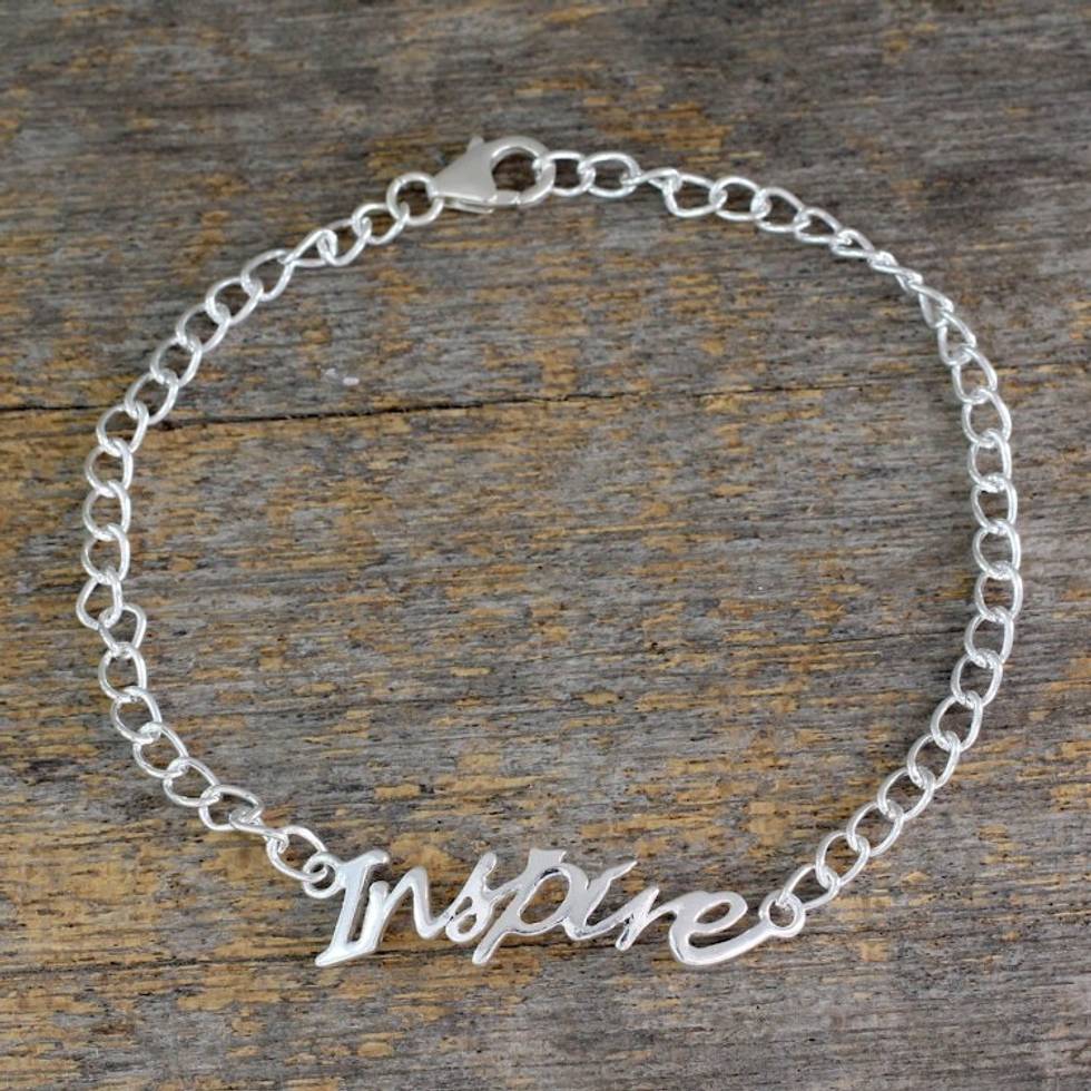 Sterling Silver 925 Bracelet with Inspire Pendant 'Remember to Inspire' Item ID: 2669925540