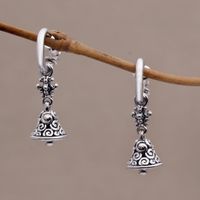Sterling Silver 925 Half Hoop Earrings with Bell Charms 'Swara Genta' Item ID: 2671821750