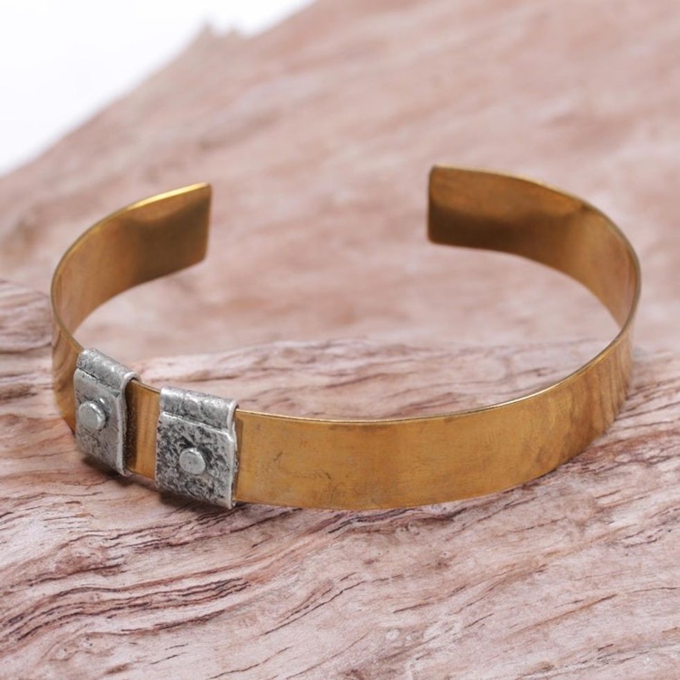 Sterling Silver Accent Brass Cuff Bracelet by Bali Artisans 'Island Journeys' Item ID: 2671734999