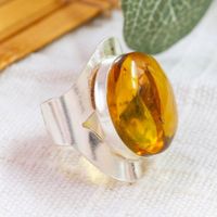 Sterling Silver Adjustable Cocktail Ring with Round Amber 'Shimmering Glam' Item ID: 2671807486