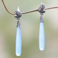 Sterling Silver Agate Drop Earrings 'Blue Honeysuckle' Item ID: 2669921299