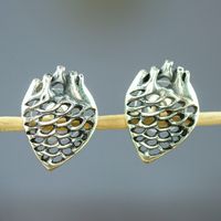 Sterling Silver Agave Heart Button Earrings 'Agave Heart' Item ID: 2671807863