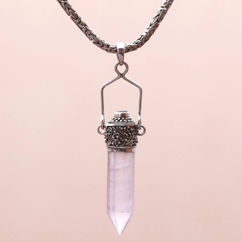 Sterling Silver Amethyst and Clear Quartz Amulet Necklace 'Precious Amulet' Item ID: 2669920763